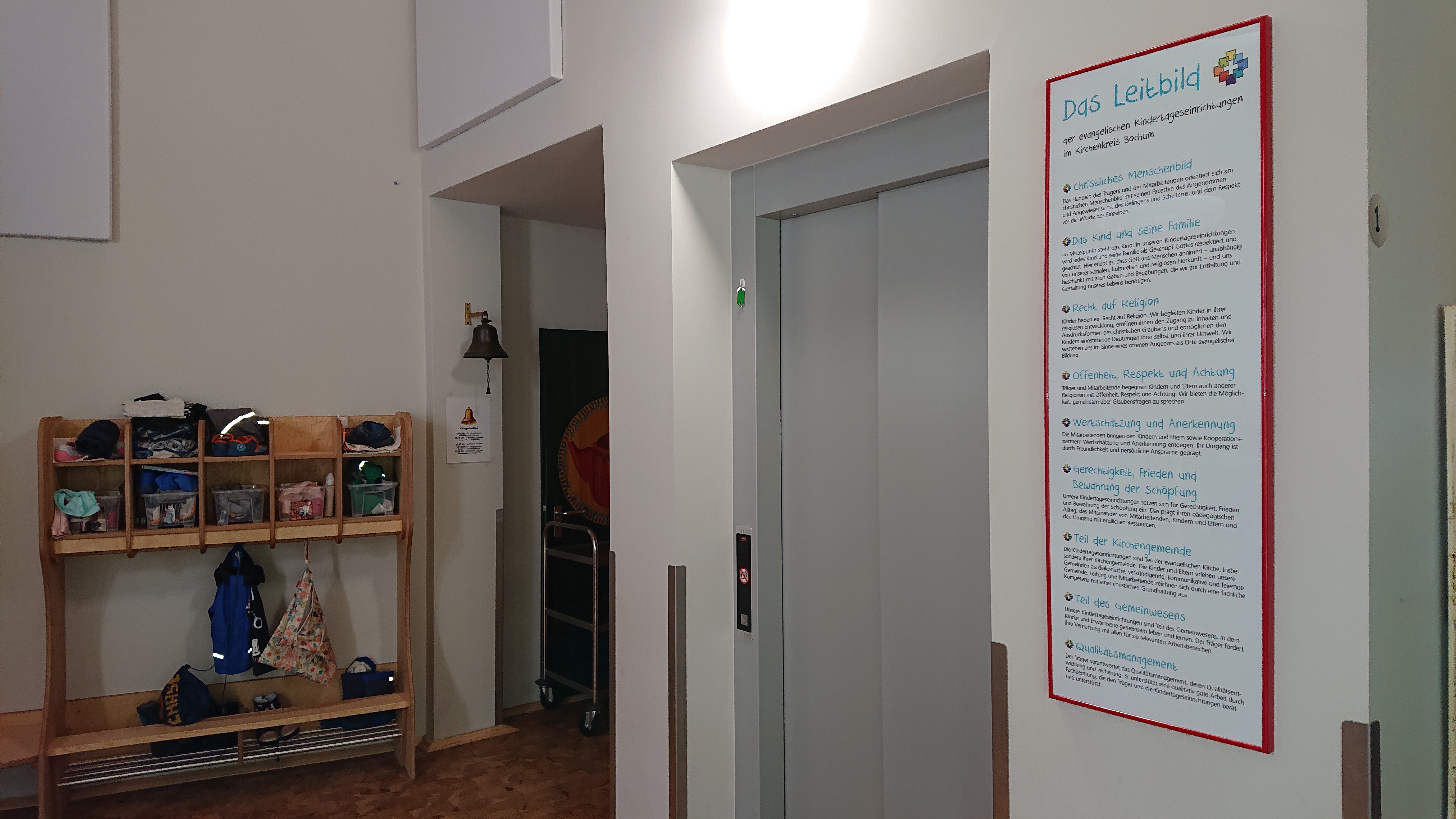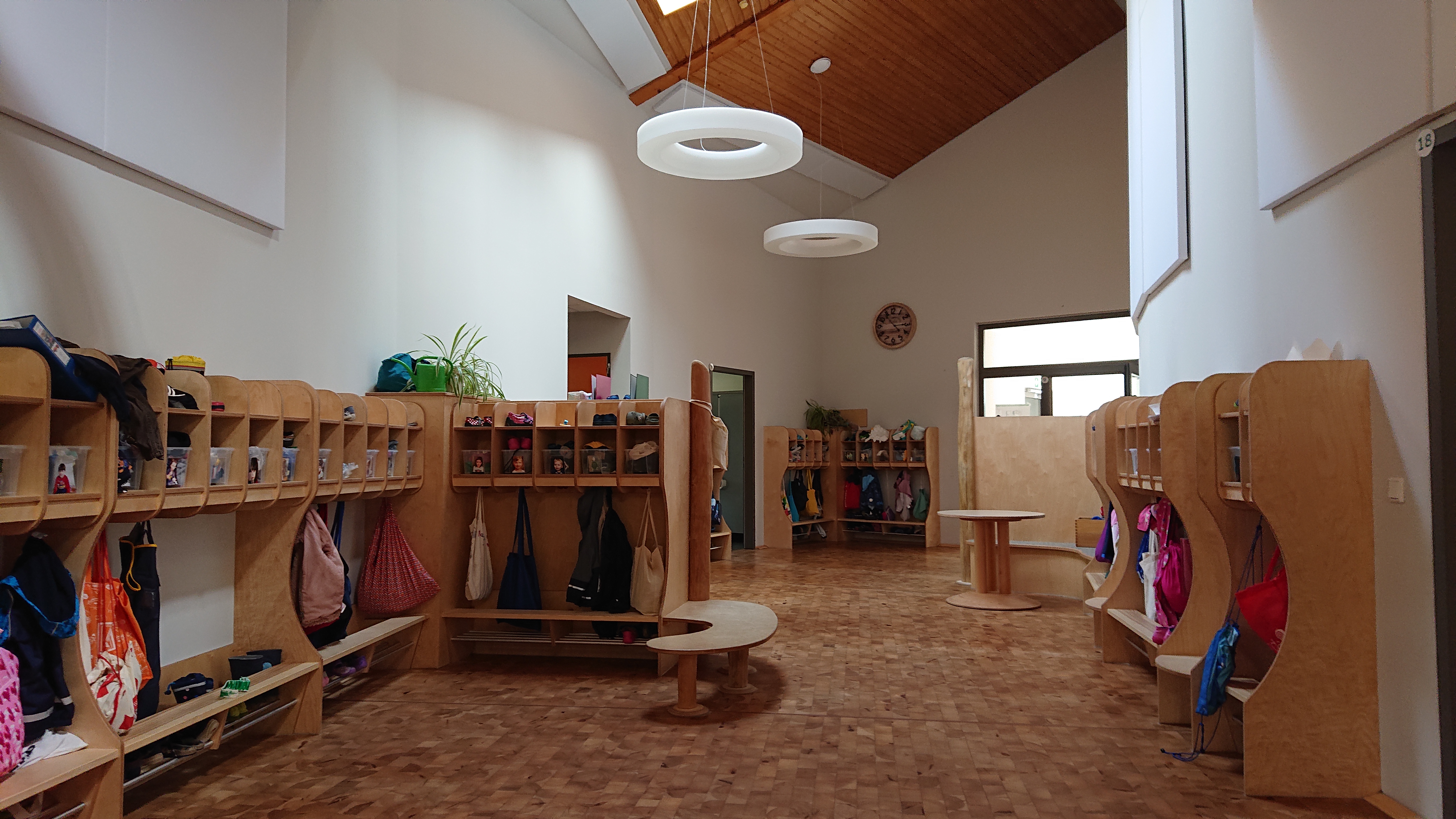 ... Dort haben die Garderoben für die 3- bis 6-jährigen Kinder ihren Platz.