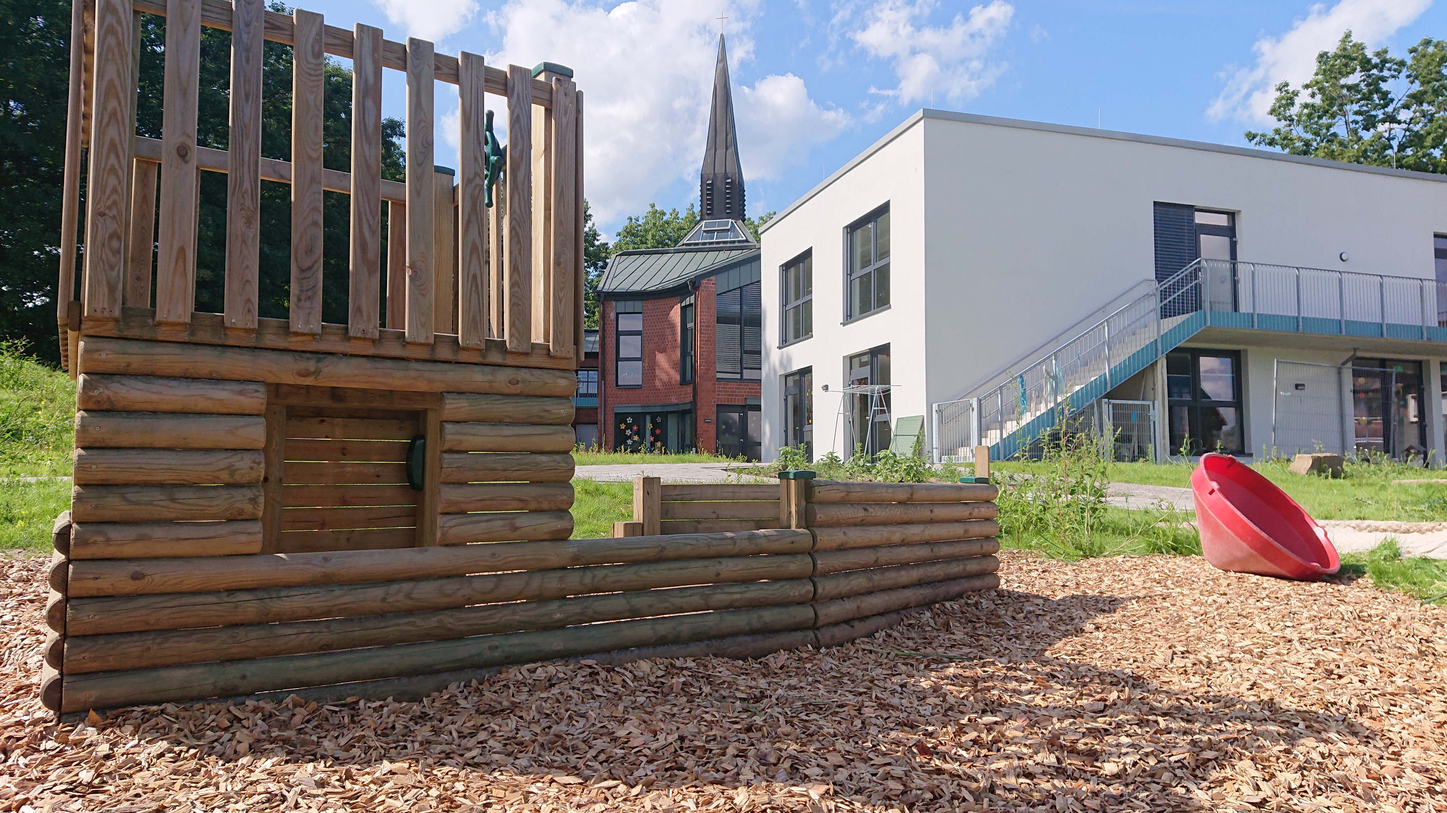 Auf dem durch Zukauf erweiterten Gemeindegrundstück ist großzügig Platz für ein schönes und kindgerechtes Außenspielgelände.